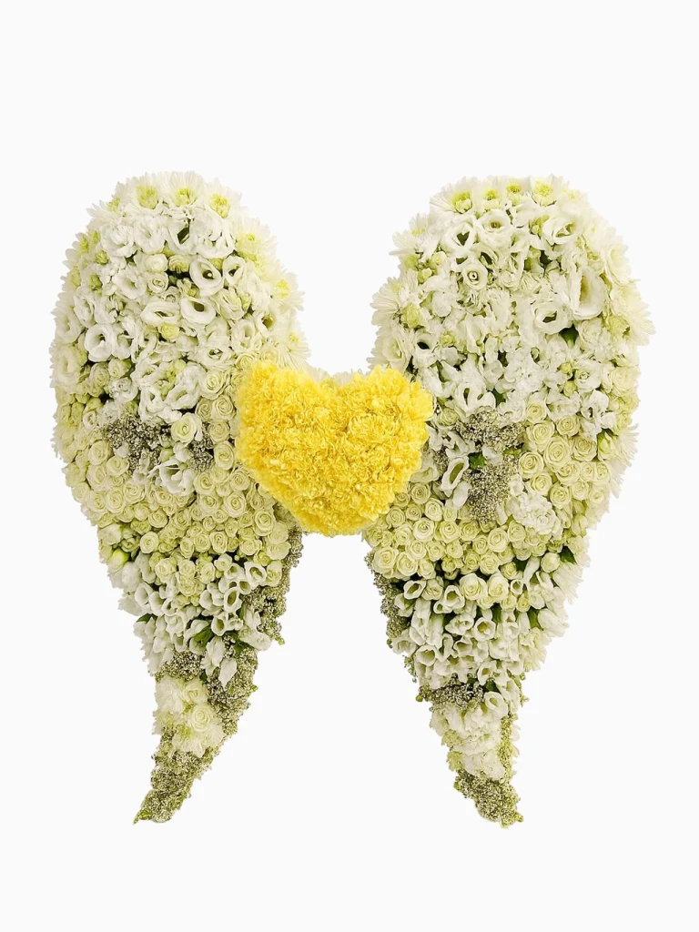 The angel wing shape conveys peace and comfort, offering a moment of reflection and calm in a time of sorrow.