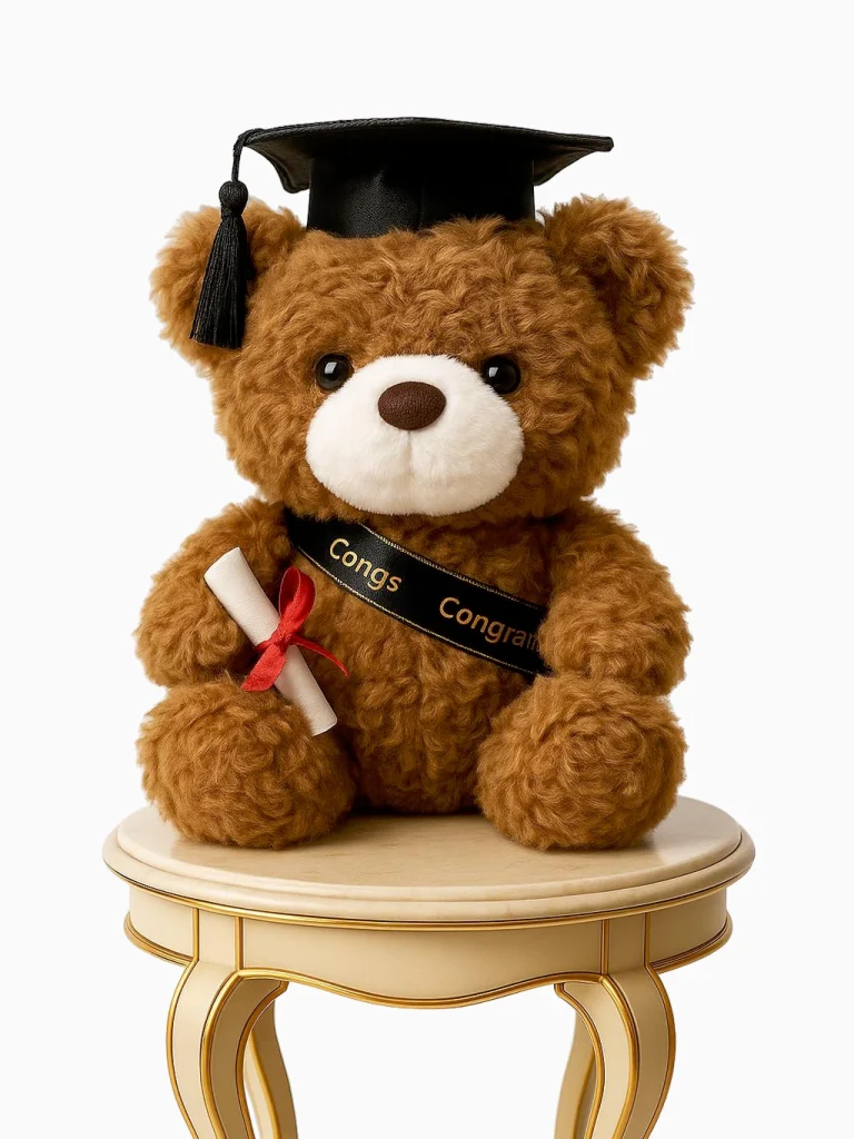 Teddy bears have been symbols of comfort and companionship for over a century, and in many cultures, they represent safety and warmth. When given as a graduation gift, they also symbolize care, celebration, and recognition of the graduate’s hard work and achievements.