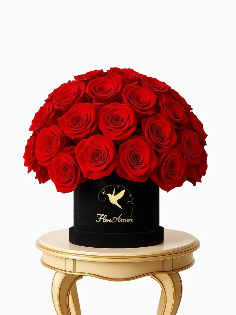 Red roses have symbolized deep romantic love since ancient times. The tradition of gifting boxed roses became popular in European courts, where the gesture was seen as both intimate and timeless. A velvet box adds an extra layer of elegance and intention, making this a gift with history behind it.