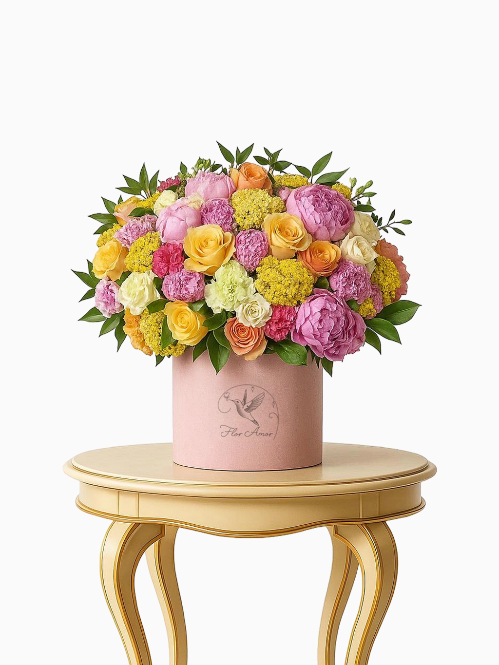 Pink roses symbolize admiration, sweetness, and gratitude. Chrysanthemums are linked to joy and optimism, while carnations represent love and fascination, making this bouquet perfect for expressing heartfelt emotions.