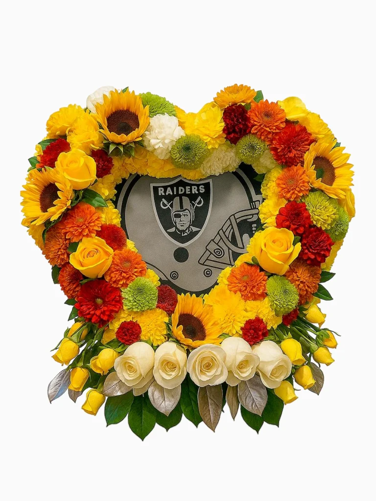 A Raiders Sympathy Wreath Heart offers a fitting tribute to a fan who lived their life with pride and spirit. Whether it’s for a memorial service, funeral, or as a meaningful gesture for the family, this floral arrangement is designed to express both loss and pride.