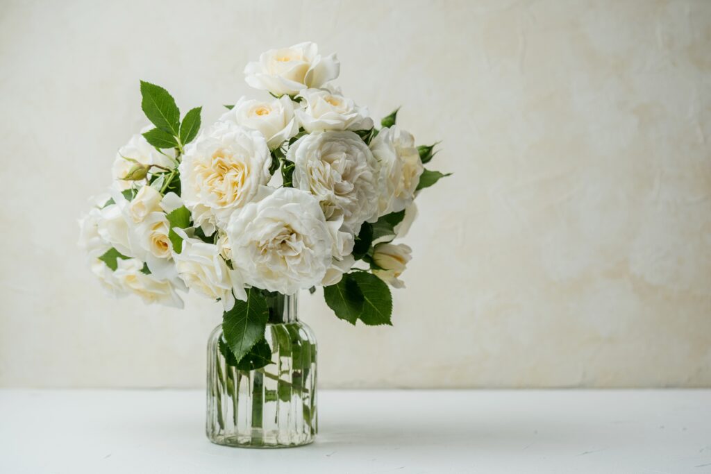 Some of the most popular flowers used in mixed arrangements with white roses include hydrangeas, ranunculus, peonies, and baby’s breath. Hydrangeas add fullness and soft clusters that create depth in the bouquet. Ranunculus introduce delicate layered petals that echo the shape of roses while adding subtle complexity. Peonies contribute a lush, romantic appearance with their large, soft blooms, making them a favorite for wedding and luxury arrangements. Baby’s breath offers a light, airy texture that softens the design and highlights the beauty of the central roses.